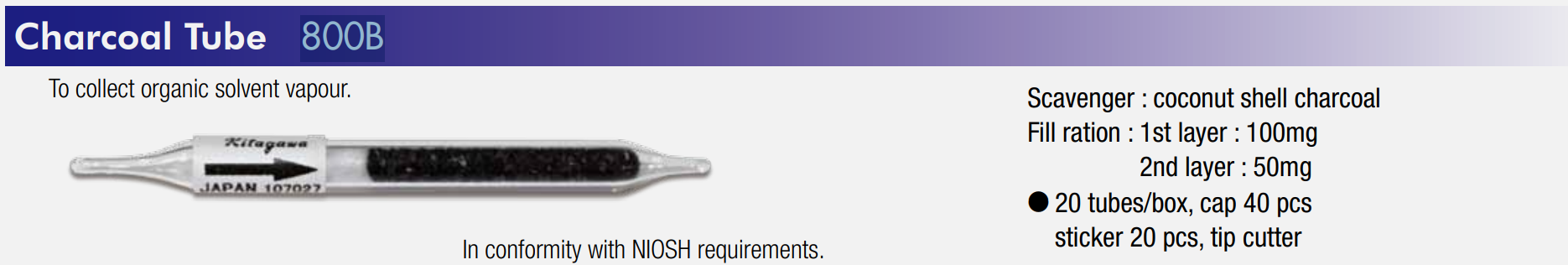 Charcoal tube (to collect organic solvent vapour)