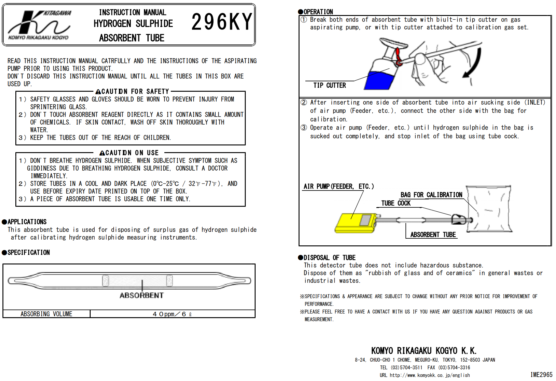 Hydrogen Sulfide Gas Absorbent Tube